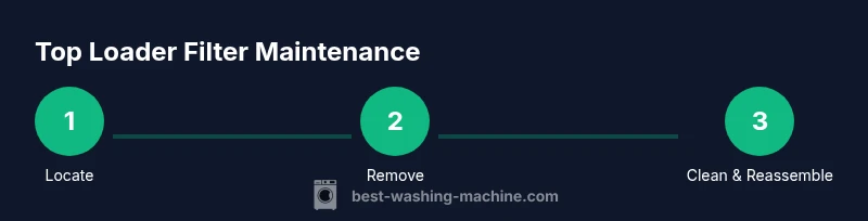 Top-loading washing machines rely on a built-in filter or screen to trap lint, hair, coins, and other debris before water is pumped out. When this screen becomes clogged, drainage slows, odors develop, and the pump may strain, potentially shortening the appliance’s life. According to Best Washing Machine analysis, regular inspection and cleaning of the filter is a simple, safe maintenance task that homeowners can perform with common tools. By knowing where the filter sits and how debris collects, you can prevent clogs and keep your washer draining efficiently, which also helps maintain energy efficiency over time. A well-maintained filter also helps protect delicate fabrics by preventing debris from circulatory pathways during the wash cycle.