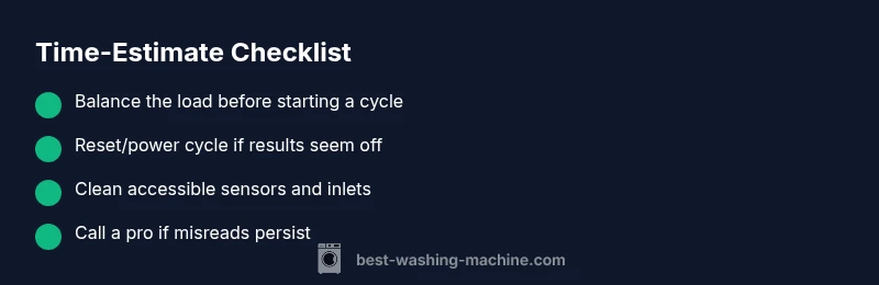 There are several frequent reasons why time estimates can look off on a washing machine. First, sensor calibration drift or fault can skew readings, especially on older units. Second, unbalanced or overloaded drums can stress the motor and confuse timing calculations. Third, partial loads or small items (like a few socks) may cause the machine to reassess the cycle unexpectedly. Fourth, power fluctuations or voltage dips can temporarily disrupt electronics, causing a momentary jump in the timer. Finally, programming quirks or a faulty timer control board may produce inconsistent estimates. Best Washing Machine Analysis, 2026, notes that many misreads stem from load dynamics and calibration drift rather than any malicious firmware.