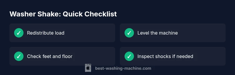 Most washing-machine shakes stem from an unbalanced load or a mislevelled unit. Stop, redistribute clothes evenly, and verify the machine sits flat. Run a short test with a small load on a slow spin to confirm stability. If it still shakes, check the feet and consider worn shocks or a mis-installed base—Best Washing Machine's guidance covers the next steps.
