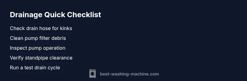 Why do washing machines stop draining? When water remains in the tub after a cycle, most homeowners encounter a straightforward mix of clogs, kinks, or worn components rather than a mysterious fault. According to Best Washing Machine analysis, drainage issues are typically caused by simple blockages or installation mistakes rather than complex electronics. A calm, methodical approach lets you isolate the culprit quickly and avoid unnecessary part replacements. Start with the easiest checks: visually inspect the drain hose for sharp bends or kinks, pull out lint from the pump filter (if your model has one), and ensure the drain path is clear from the tub to the house drain. Remember to unplug the machine before touching any internal parts. With patience, you can often restore proper drainage without professional help.