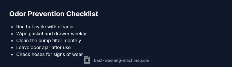 Before diving into deeper cleaning, run through a quick checklist to rule out simple causes. Check the detergent drawer for dried soap residues and mold; wipe with warm, soapy water and let it dry completely. Inspect the door seal for slimy film or standing water and wipe with a microfiber cloth. Run a hot wash using the appliance's cleaning cycle or a dedicated washer cleaner. Ensure the drain filter (if accessible) is clear of lint and coins, and that the drum empties properly after cycles. Best Washing Machine analysis shows that many odors originate from these accessible spots, so addressing them first is efficient. Finally, leave the door ajar after cycles to promote drying and discourage mold growth.