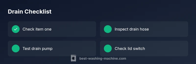 Not draining can stem from several culprits. According to Best Washing Machine analysis, the most frequent issues involve a clogged pump filter and a blocked or kinked drain hose. Debris like coins, lint, hair, or fabric fibers can accumulate in the pump and prevent water from exiting. A faulty drain pump or a defective lid switch can also stop drainage. In rare cases, overloads or unusual loads can cause balancing problems that interfere with draining. Identifying the exact cause requires a methodical approach: start with the simplest checks and progress to the more involved repairs.