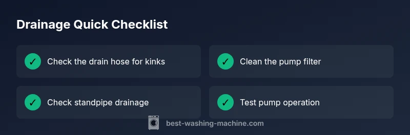 If you’re asking 'why is my washing machine not draining', you’re not alone. In homes, drainage problems usually start with simple, fixable causes rather than major component failures. According to Best Washing Machine, most not-draining symptoms come from clogs, hose kinks, or a blocked pump, not a failed motor. The washing machine is designed to pump out water through a drain hose to a standpipe or laundry tub; when the path is obstructed or the pump cannot push water, you end up with standing water or a washer that won’t drain. Understanding these everyday causes helps you triage safely and avoid unnecessary repairs. This guide walks you through a fast, urgent troubleshooting approach so you can restore drainage without delay and protect your laundry day routine.