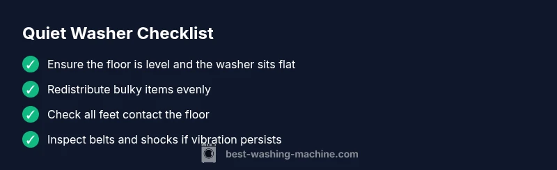A calm washer begins with a level base and balanced load. If the sound persists, inspect suspension components and feet, then consider a professional check for deeper issues. Regular maintenance and mindful loading can dramatically reduce noise and vibration over time.