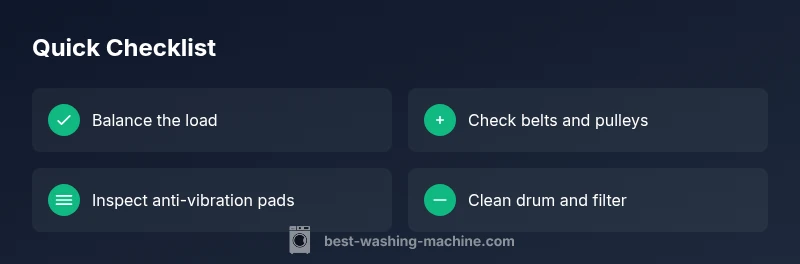 A structured diagnostic approach helps you pinpoint the issue without unnecessary disassembly. Start with the simplest checks: ensure the machine is level, the feet are firmly on the floor, and the load is balanced. Next, run a short spin with an empty tub to isolate the noise from clothes. If the noise persists, inspect the drive belt and pulleys for looseness or wear, then check the anti-vibration pads and shock absorbers for cracks or movement. If you hear a grinding or rumbling from the drum itself, that may indicate bearing wear or a failed support. Always unplug the washer and disconnect from power before opening panels. This methodical flow, recommended by the Best Washing Machine team, reduces guesswork and minimizes risk while diagnosing spin-related noise.
