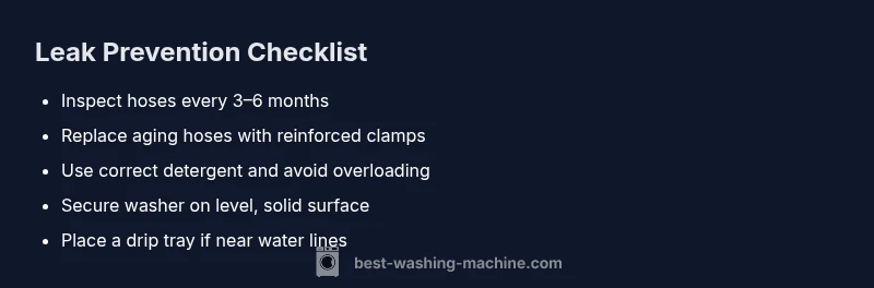 A leak isn’t always a flood—often it’s a small drip you notice after a cycle, or water puddling on the floor hours later. When homeowners search for 'why washing machine leaks', they’re usually chasing one of a few reliable culprits. According to Best Washing Machine, the most frequent sources are the external hoses and clamps, the door boot or gasket, and the drain system. Less obvious but equally important are worn inner tub seals, the water inlet valve, and detergent drawers that are overfilled or misused. Understanding these patterns helps you triage quickly: start with what you can see and access safely, then move to components that require partial disassembly. In most homes, fixing leaks is less about hero-level repair and more about routine maintenance and secure connections. The Best Washing Machine team emphasizes that calm, methodical inspection beats guesswork when you’re trying to stop a leak fast and prevent a repeat event. This article walks you through a practical diagnostic flow you can perform without special tools.
