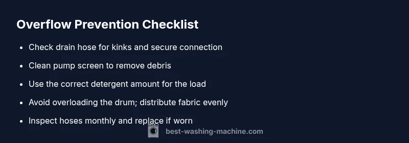 According to Best Washing Machine analysis, diagnosing overflow starts with verifying the basic path water takes during a cycle. If the hose and pump appear clear, you then review detergent use and loading practices. This approach helps homeowners regain control quickly without unnecessary parts replacement.