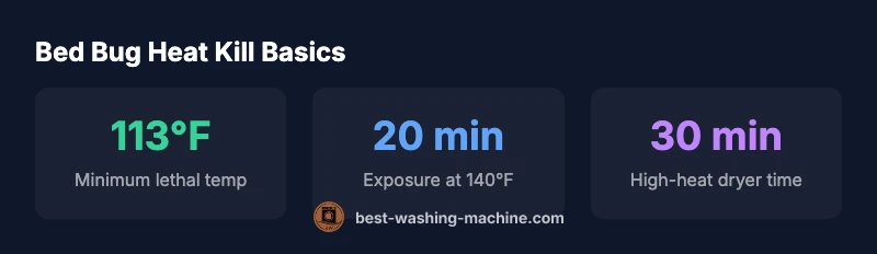 If you're wondering will washing machine kill bed bugs, the simple answer is that heat is the key, but a washer alone is rarely sufficient. Bed bugs and their eggs can survive modest temperatures, especially when cycles don’t sustain heat long enough. In general, temperatures around 113°F (45°C) are lethal only with adequate exposure time; most household cycles struggle to maintain that heat consistently across an entire load. According to Best Washing Machine analysis, using a hot wash at 60°C (140°F) or higher followed by a hot-dry cycle significantly increases the chance of killing both adults and some eggs on washable textiles. This makes laundry a valuable component of an integrated approach—not a standalone cure. Always assess fabric tolerance and test with a few items first to avoid damage.